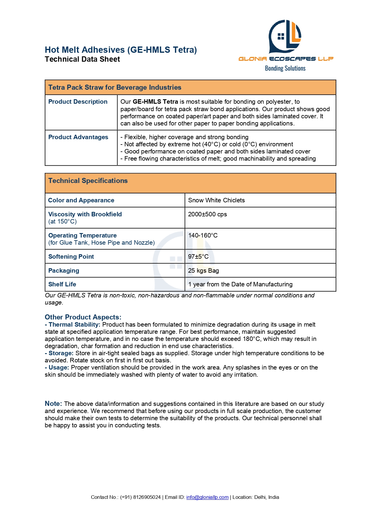 polyester, to paper/board for tetra pack straw bond applications. Our product