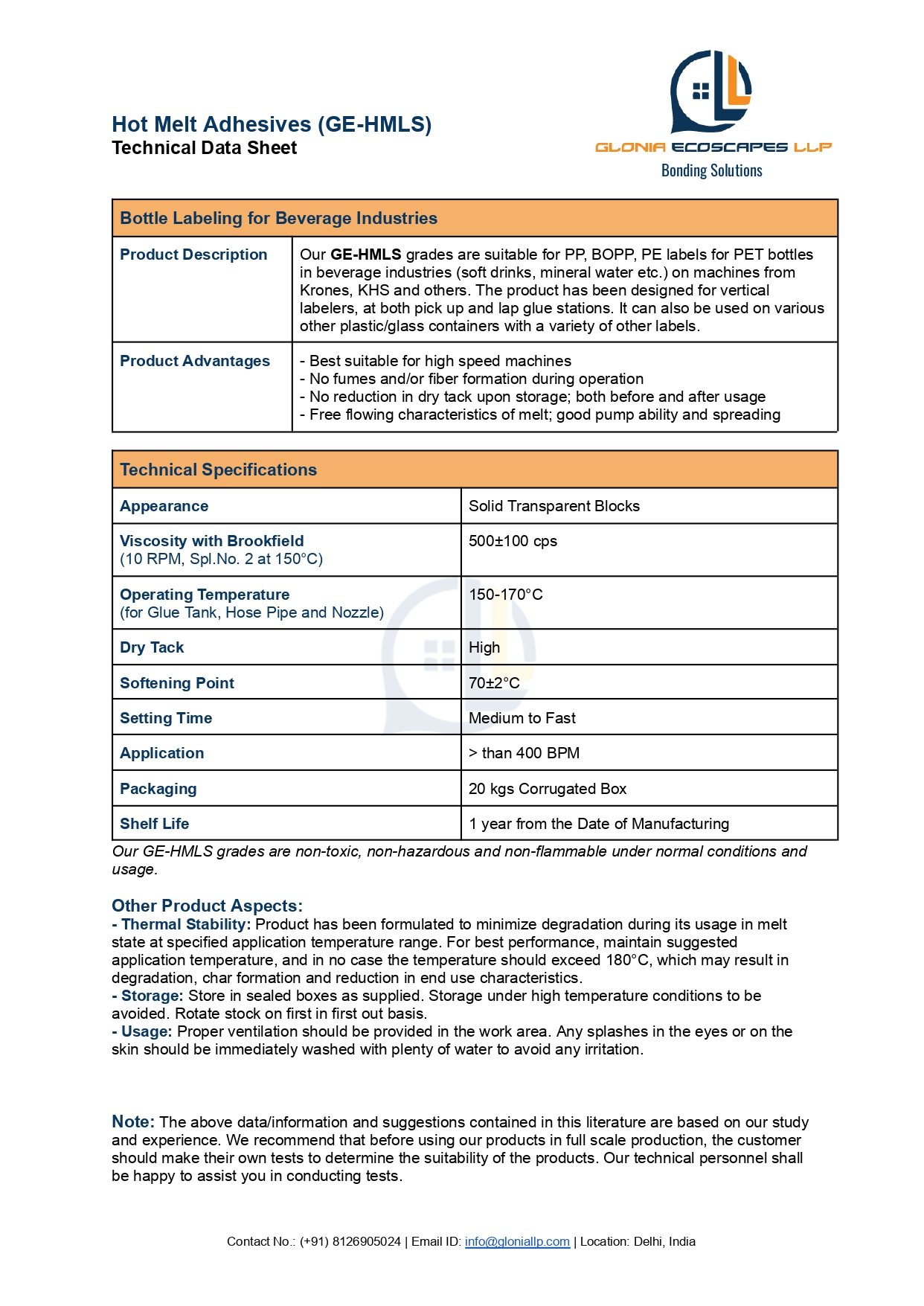 characteristics of melt; good pump ability and spreading